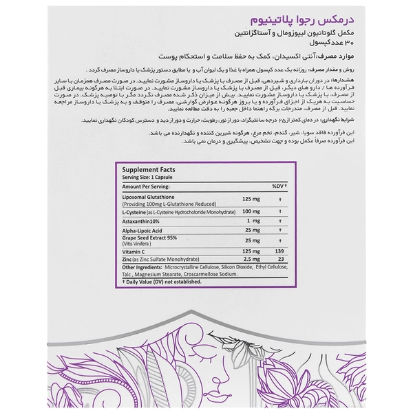 - حاوی ترکیباتی همچون گلوتاتیون لیپوزومال، عصاره هسته انگور و آلفا لیپوئیک اسید