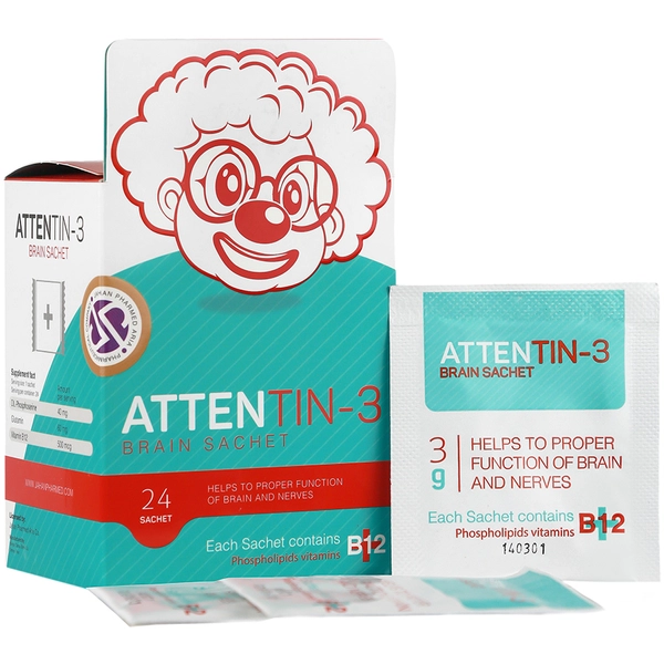 ساشه اتنتین 3، مکمل تغذیه ای بهبود دهنده عملکرد مغز و اعصاب، متعلق به شرکت داروسازی جهان فارمد آری بوده و با فرمولاسیون منحصر به فرد متشکل از ال-فسفوسرین، اسید آمینه گلوتامین و ویتامین B12 و خواص محافظت کننده عصبی، به منظور کمک به تقویت اعمال مرتبط با قدرت شناختی نظیر حافظه، تمرکز و یادگیری فرموله شده و می تواند در تخفیف استرس، بهبود خلق و خو و مدیریت علائم بیش فعالی و اوتیسم نیز کمک کننده باشد. اتنتین 3 در بسته بندی های 24 عددی حاوی ساشه های 3 گرمی و به فرم دارویی پودر طراحی شده و به بازار آمده است.