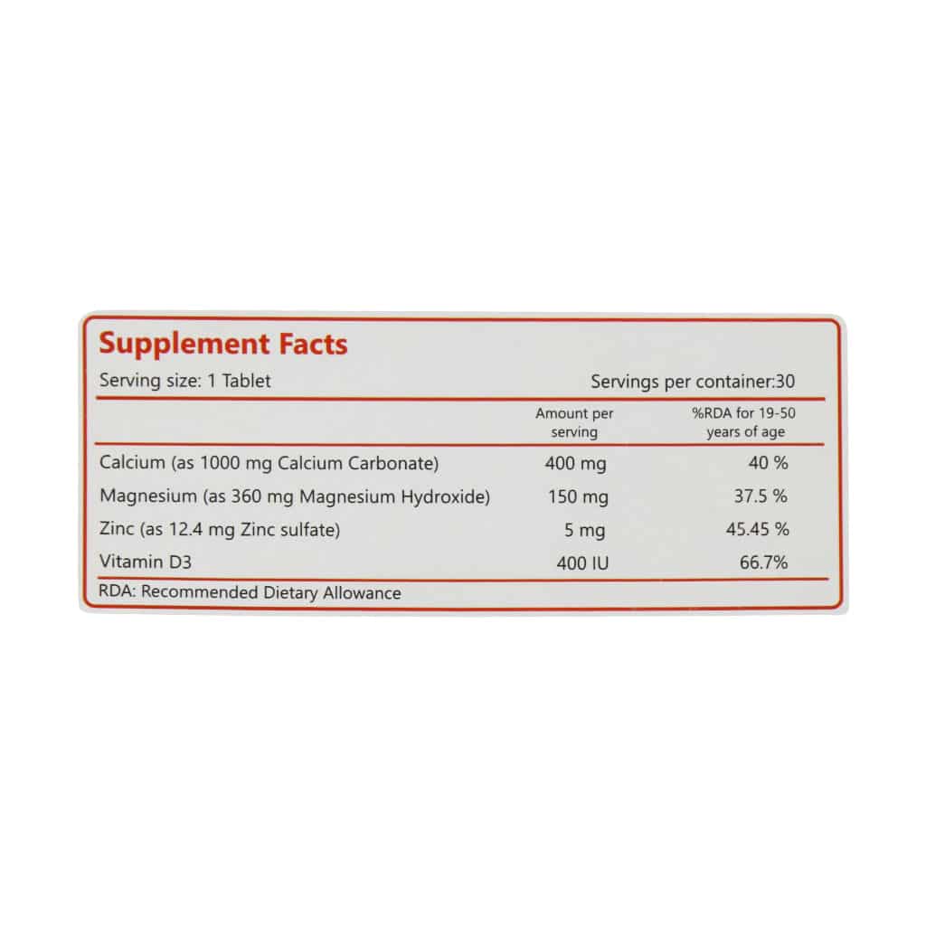 • حاوی منیزیم هیدروکساید، زینک سولفات و ویتامین D3 برای حفظ سلامت استخوان